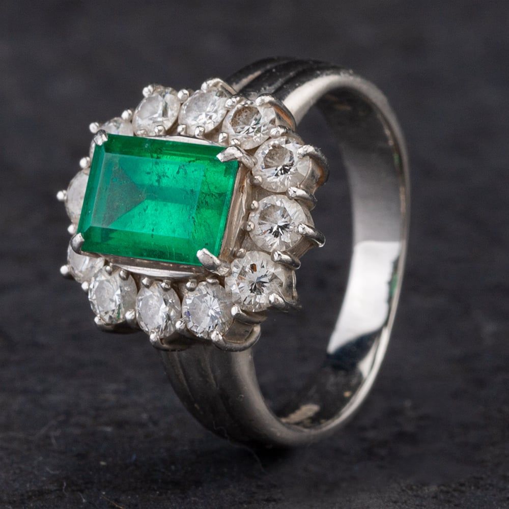 Second Hand Platinum 1.49ct Emerald & 1.06ct Diamond Cluster Ring 4148647