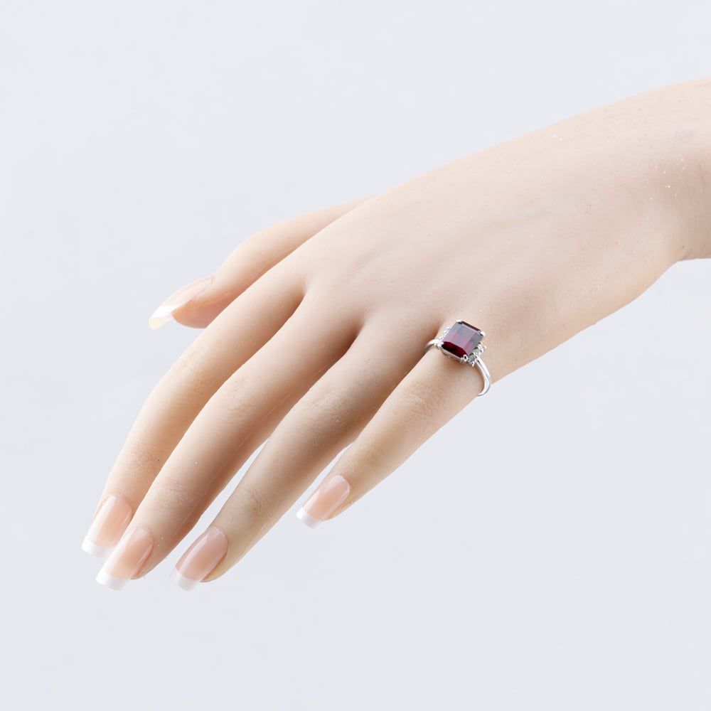 Platinum Garnet & 0.20ct Brilliant Cut Diamond Rectangular Dress Ring