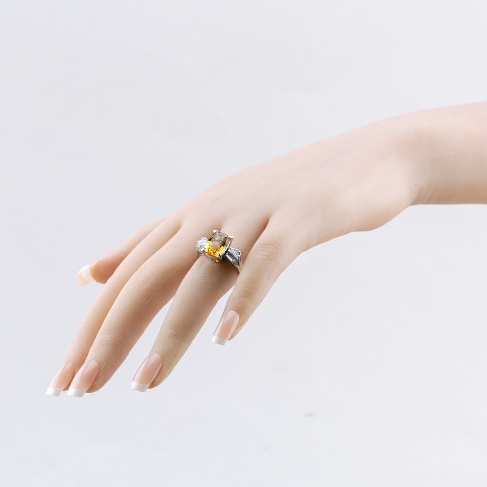 Second Hand Platinum Imperial Topaz & Baguette Cut Diamond Cushion Shape Dress Ring 43451010 Second Hand Platinum Imperial Topaz & Baguette Cut Diamond Cushion Shape Dress Ring 43451010