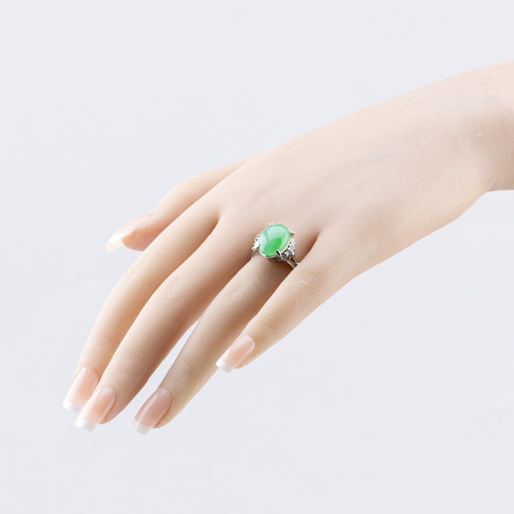 Second Hand Platinum Jade & 0.24ct Diamond Oval Dress Ring 43481000 Second Hand Platinum Jade & 0.24ct Diamond Oval Dress Ring 43481000