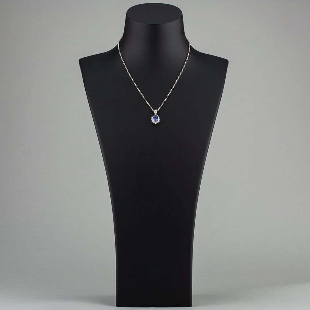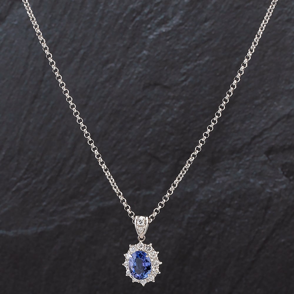 Platinum Oval Sapphire And Brilliant Cut Diamond Pendant On 16 Inch Belcher Link Chain Diamond Weight 0.54ct Sapphire Weight 2.11ct