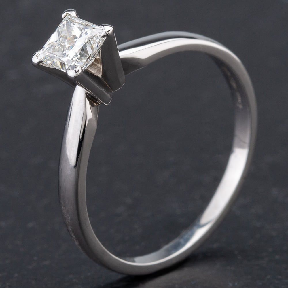 Platinum Princess Cut Diamond 4 Claw Set Solitaire Ring with GIA Diamond Report Approximate Diamond Weight 0.61ct Colour Grade G Clarity Internally Flawless