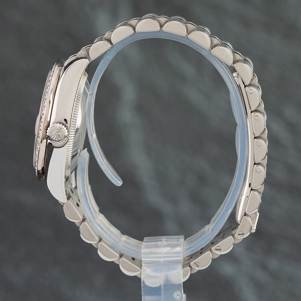 Batch 365 The Rolex Datejust Diamond Watch is composed of a 31mm round shaped stainless steel case and silver stainless steel bracelet with a fold over clasp. It has a mother of pearl analogue dial with a date display, luminescent dial hands, which is protected beneath scratch resistant sapphire crystal glass. Power is generated by the chronometer certified automatic movement. This model is also water resistant up to 50 metres.