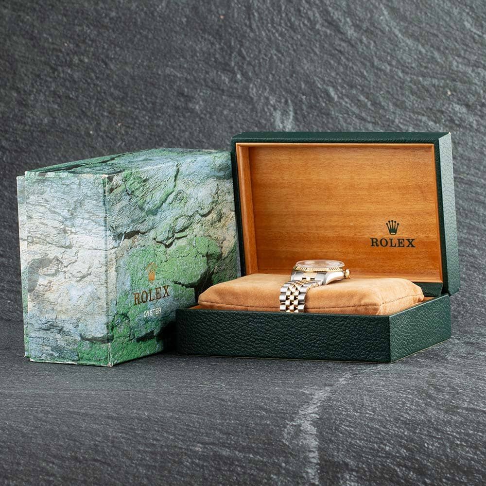 Batch 395 The Rolex Datejust Watch is composed of a 36mm round shaped stainless steel case and two colour stainless steel bracelet with a fold over clasp. It has a white analogue dial with a date display, luminescent dial hands, which is protected beneath scratch resistant sapphire crystal glass. Power is generated by the chronometer certified automatic movement. This model is also water resistant up to 100 metres.