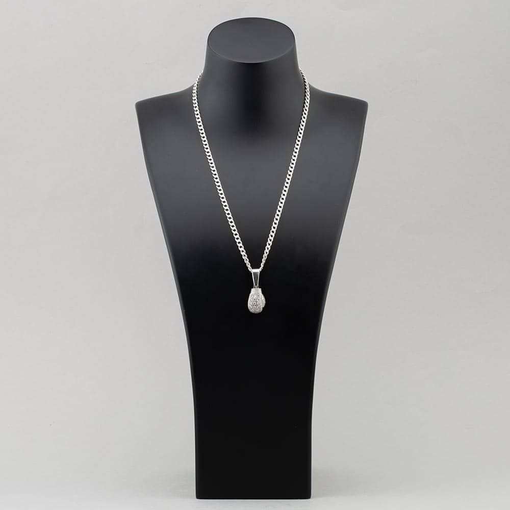 Silver Cubic Zirconia Boxing Glove Pendant & 20 Inch Curb Chain