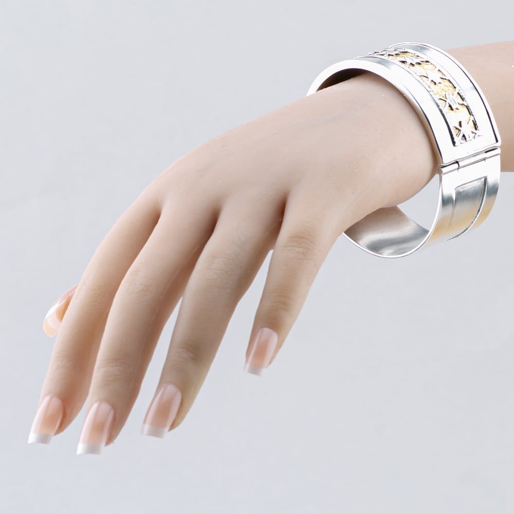 Second Hand Silver With Gold Textured Panel Wide Standard Hinged Bangle 41251523 Second Hand Silver With Gold Textured Panel Wide Standard Hinged Bangle 41251523