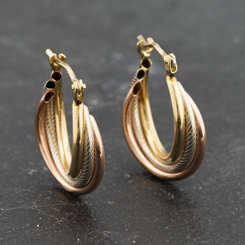 Second Hand Three Colour Gold 22mm Twist Crossover Creole Earrings 41173341