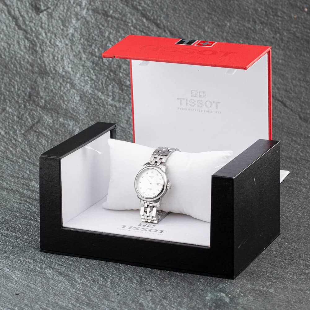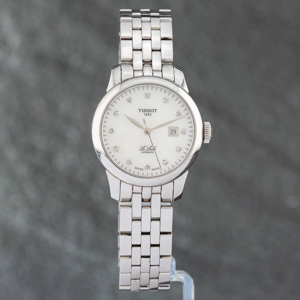 The Tissot T-Classic Le-Locle Watch is composed of a 29.0mm round shaped stainless steel case and silver stainless steel bracelet with a push button deployment clasp. It has a mother of pearl analogue dial with a date display, which is protected beneath scratch resistant sapphire crystal glass. Power is generated by the automatic movement. This model is also water resistant up to 30 metres.