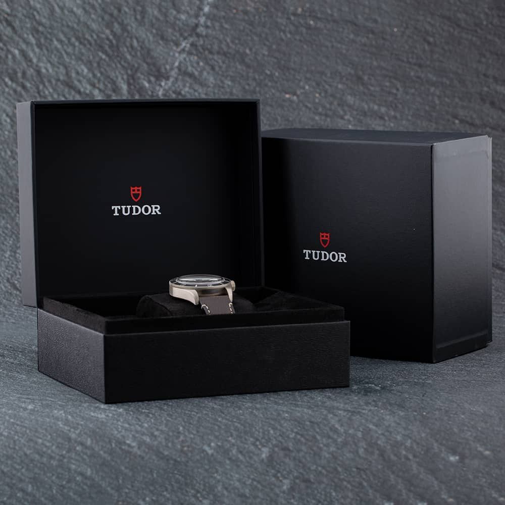 The Tudor Black Bay 58 Watch combines a round shaped stainless steel case and brown leather strap with a traditional buckle. The silver 39.0mm case measures 11.0mm thick and has a black stainless steel uni-directional rotating bezel with a screwed in case back and a lug width of 20mm. The grey analogue dial is protected beneath scratch resistant sapphire crystal glass and has dot & baton hour markers, as well as luminescent hands. Power is generated by the chronometer certified automatic movement with 27 jewels and a power reserve of up to 70 hours. The watch weighs 90.7 grams and has a water resistance of up to 200 metres.