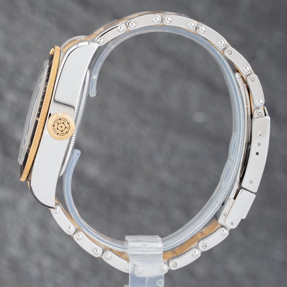 Batch 1152 The Tudor Black Bay S&G Watch combines a round shaped stainless steel case and two colour stainless steel bracelet with a fold over clasp. The silver 41.0mm case measures 15.0mm thick and has a black stainless steel uni-directional rotating bezel with a sapphire crystal case back and a lug width of 22mm. The champagne analogue dial is protected beneath scratch resistant sapphire crystal glass and has dot & baton hour markers, as well as luminescent hands, and a date display. Power is generated by the chronometer certified automatic movement with a power reserve of up to 70 hours. The watch weighs 188.7 grams and has a water resistance of up to 200 metres.