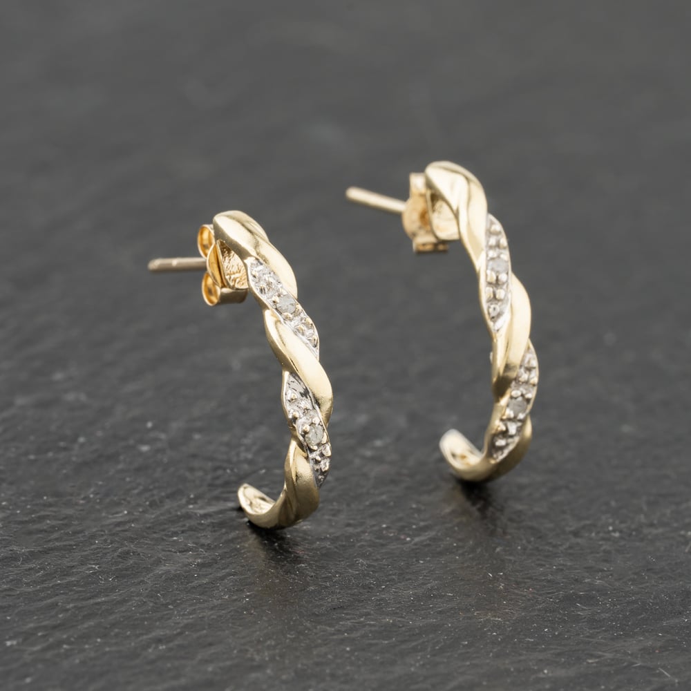 Second Hand Two Colour Gold 18mm Diamond Set Twist Half Hoop Earrings 41173855