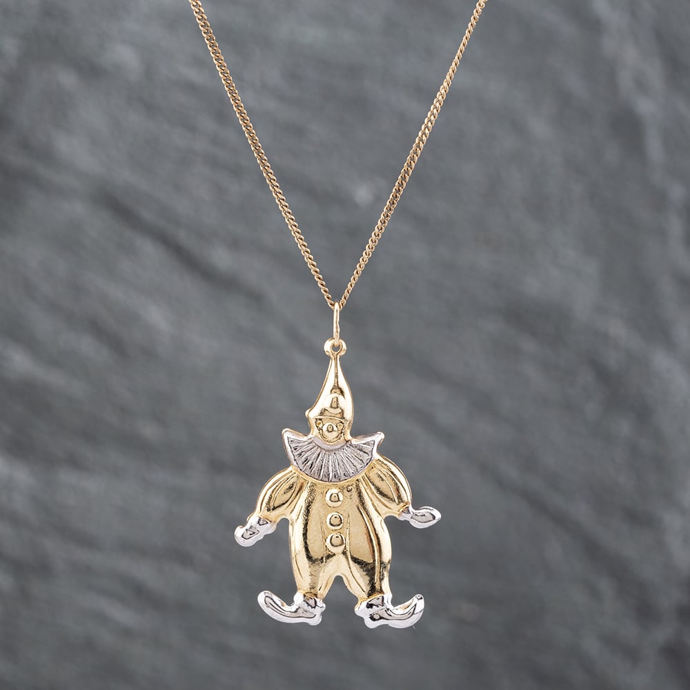 Two Colour Gold Clown Pendant & 16 Inch Curb Chain