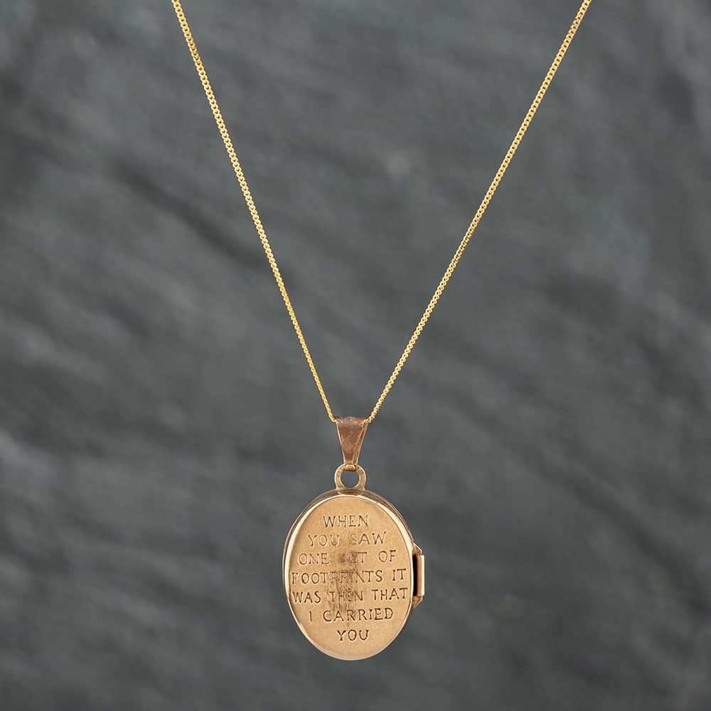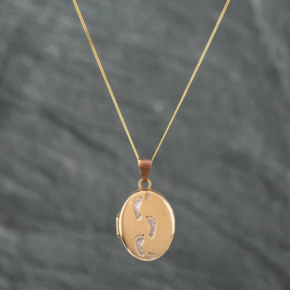 Second Hand 9ct Two Colour Gold Footprints Locket Pendant & 18 Inch Curb Chain 41391248 Second Hand 9ct Two Colour Gold Footprints Locket Pendant & 18 Inch Curb Chain 41391248 Second Hand 9ct Two Colour Gold Footprints Locket Pendant & 18 Inch Curb Chain 41391248