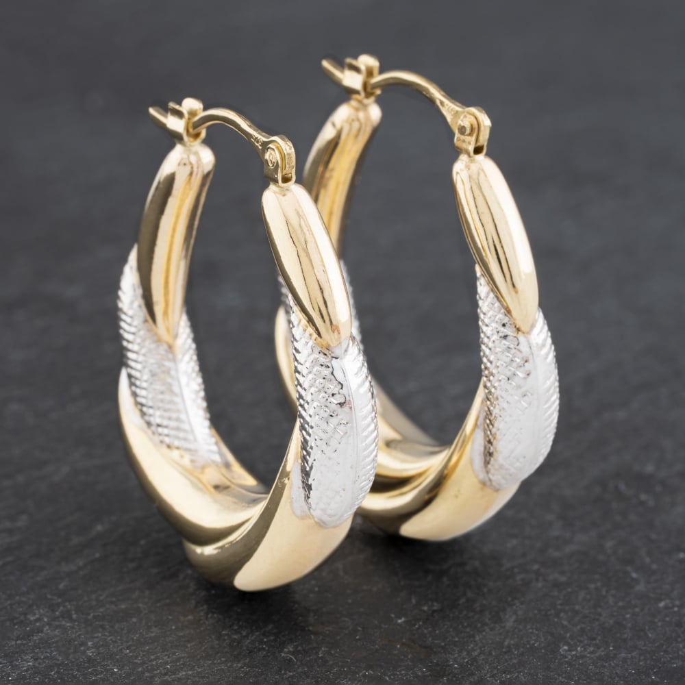 Second Hand Two Colour Gold Large Patterned Creole Earrings 41172887