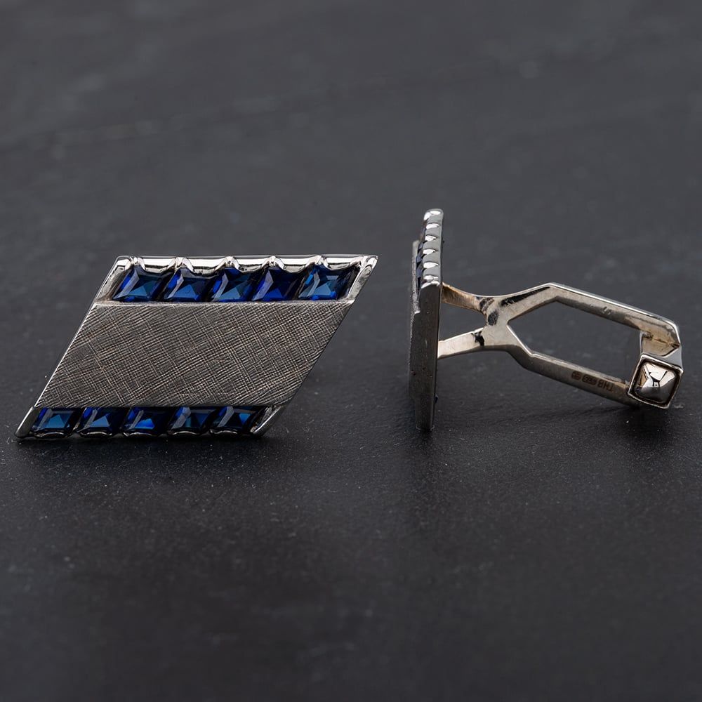 Vintage 14ct White Gold Cufflinks Made By Lucien Piccard Of The 1950S Watch Brand They Are Stamped Lucien Piccard 14ct Set with Beautiful Sapphires 10 On Each Cufflink Toggle Backs