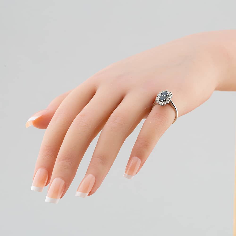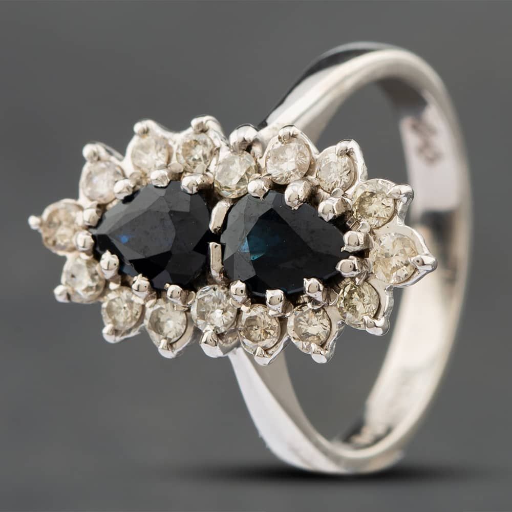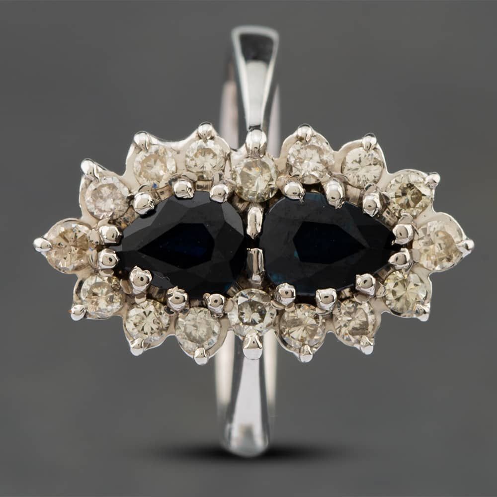 Vintage 18ct White Gold Sapphire & Brilliant Cut Diamond Double Cluster Ring