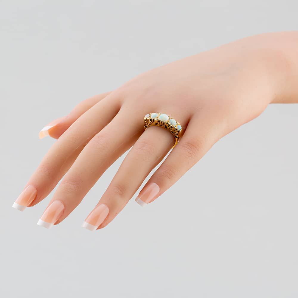 Vintage 18ct Yellow Gold Opal & Single Cut Diamond Graduated Dress Ring