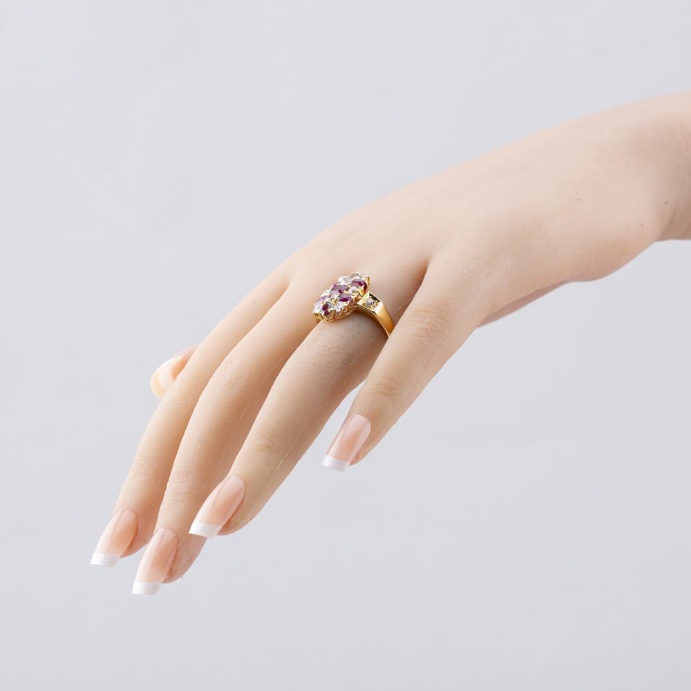 Vintage 18ct Yellow Gold Ruby & Diamond Checkerboard Cluster Ring