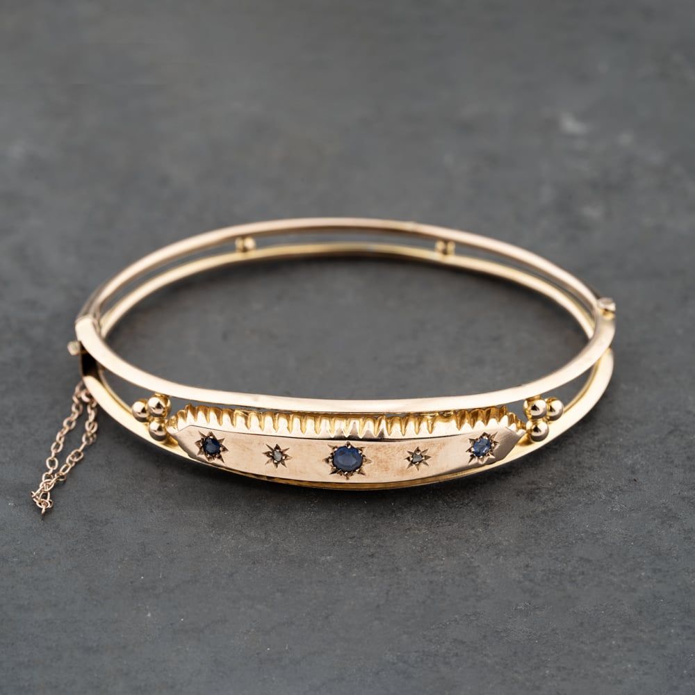 Vintage 9ct Rose Gold Sapphire & Diamond Hinged Bangle
