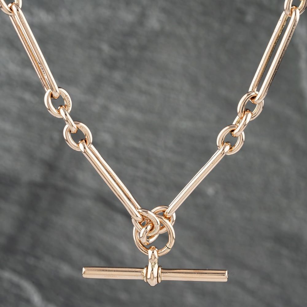 Vintage 9ct Rose Gold T Bar Albert 16 Inch Figaro Chain
