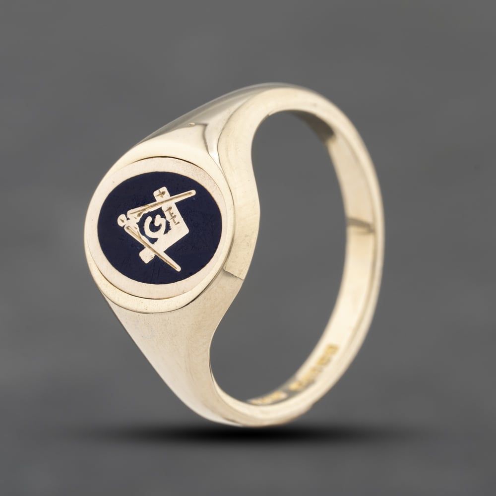Vintage 9ct Yellow Gold Enamel Oval Masonic Signet Ring