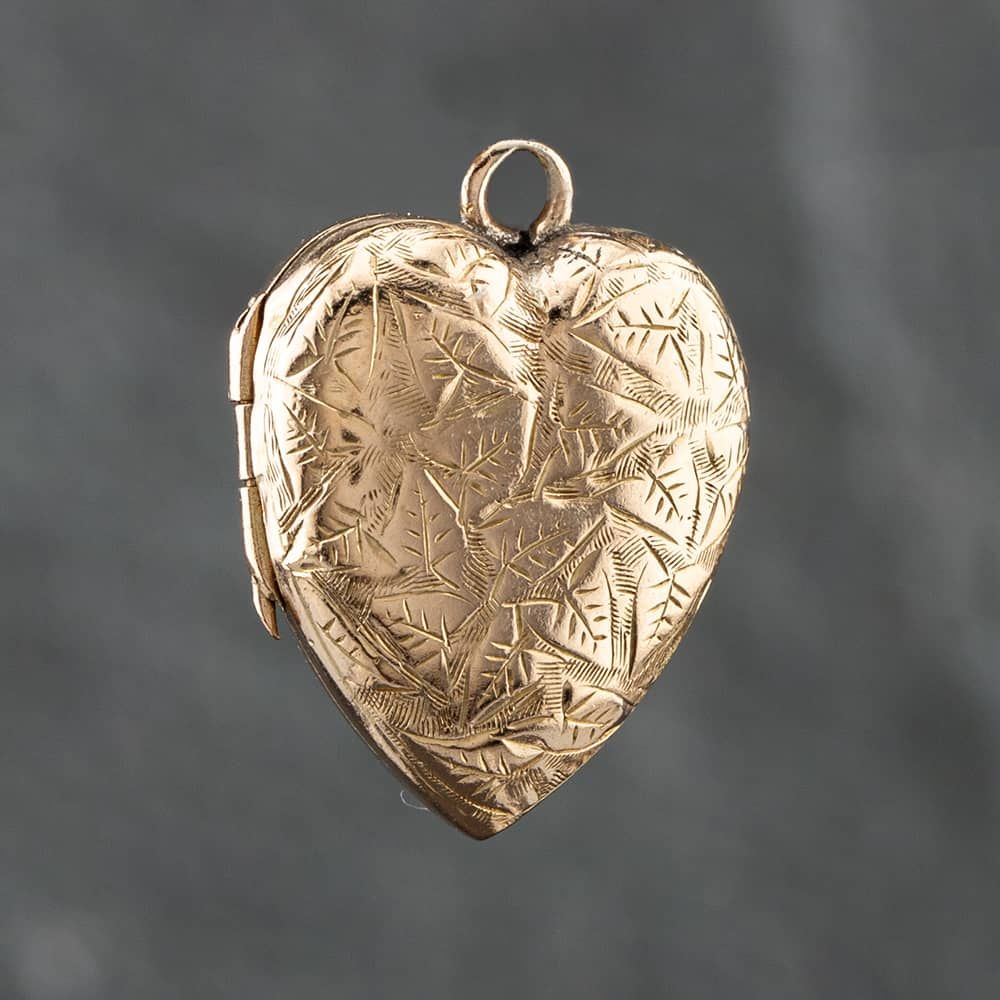 Vintage 9ct Yellow Gold Hand Engraved Heart Locket Loose Pendant