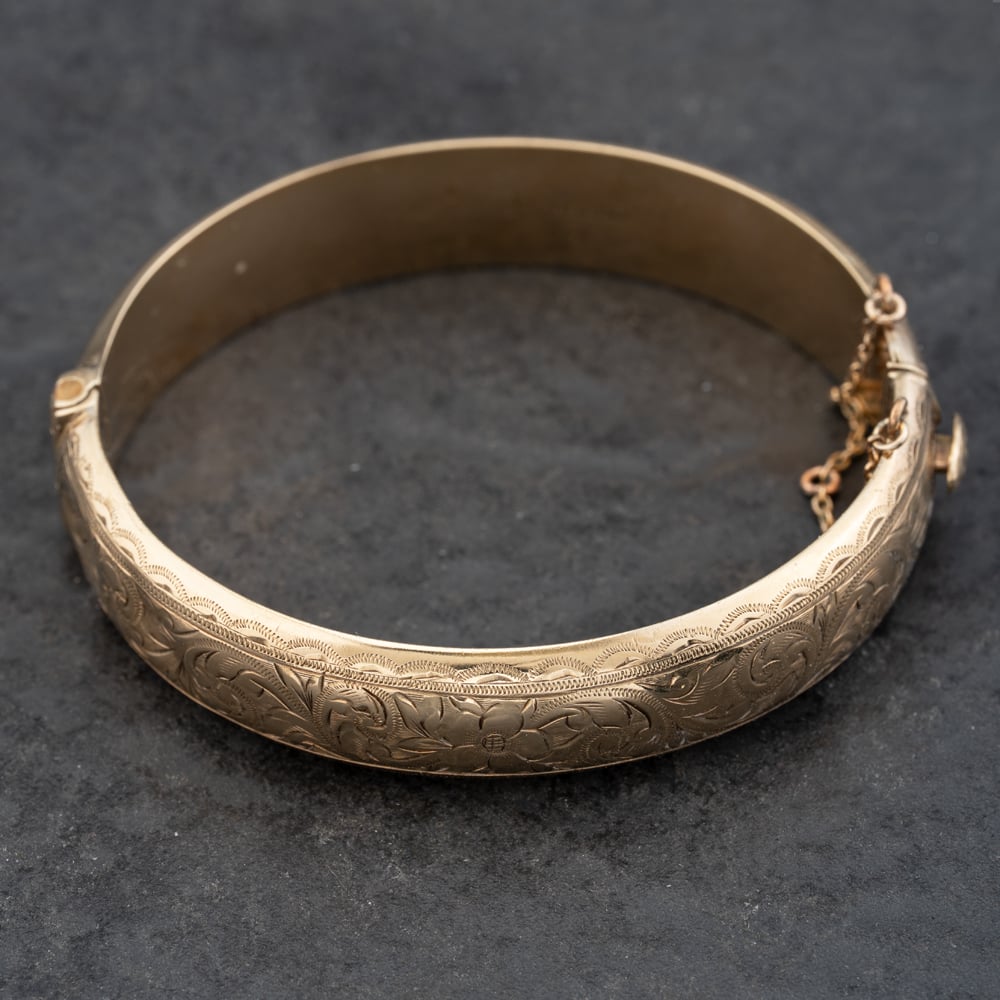 Second Hand Vintage 9ct Yellow Gold Hinged Engraved Bangle 41211379