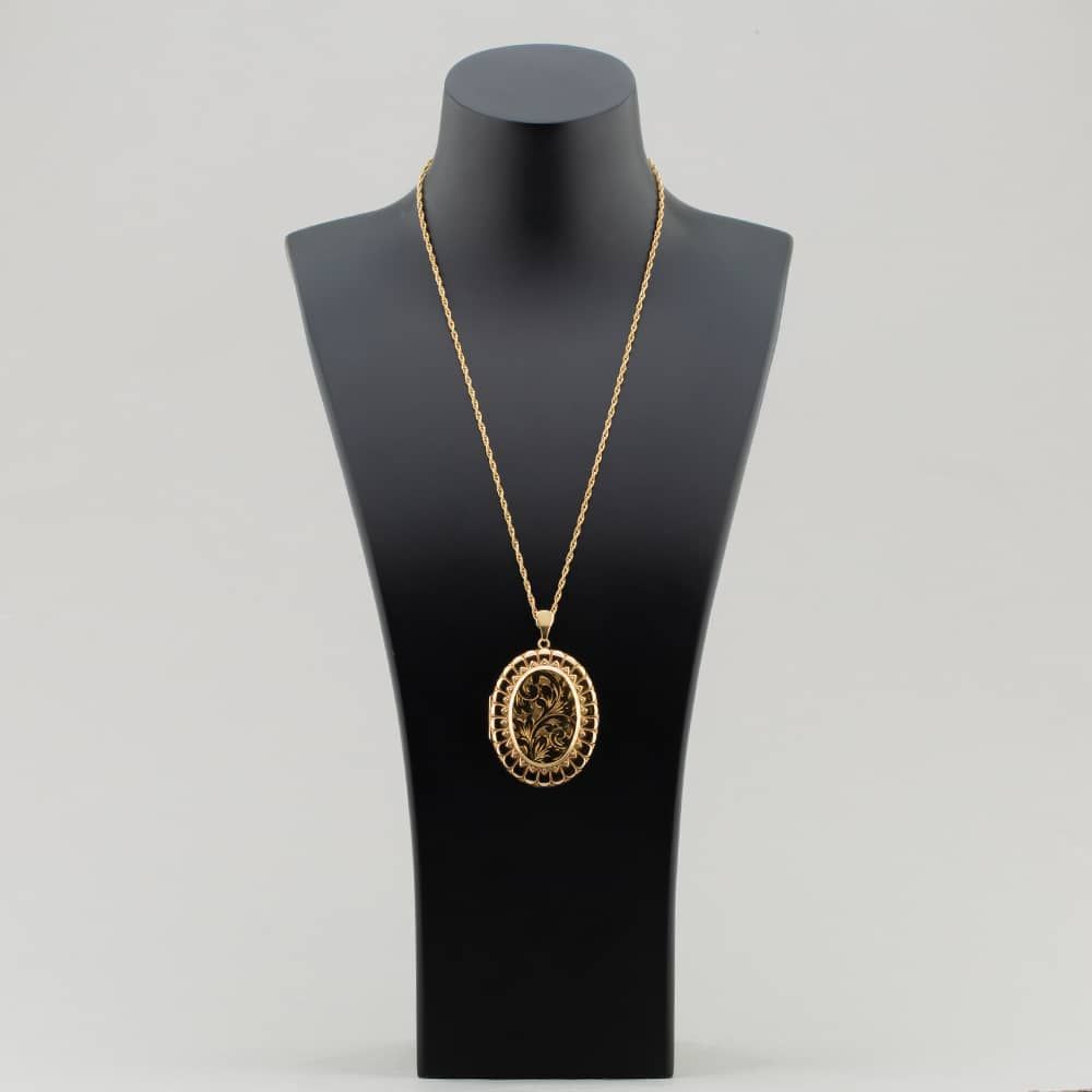 Vintage 9ct Yellow Gold Large Oval Foliate Locket Pendant & 22 Inch Prince Of Wales Chain