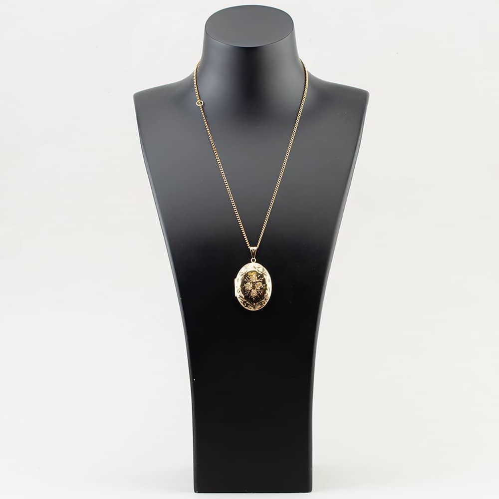 Vintage 9ct Yellow Gold Large Oval Hand Engraved Locket Pendant & 20 Inch Curb Chain