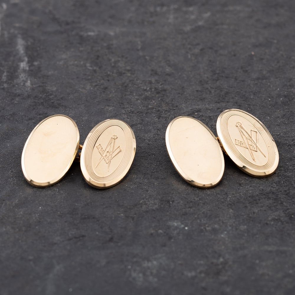 Vintage 9ct Yellow Gold Masonic Oval Cufflinks