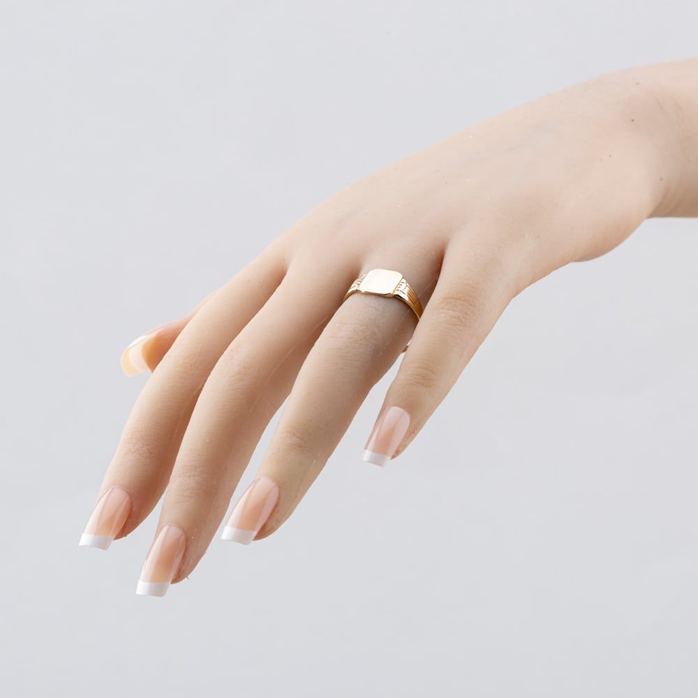 Vintage 9ct Yellow Gold Oblong Diamond Cut Patterned Signet Ring