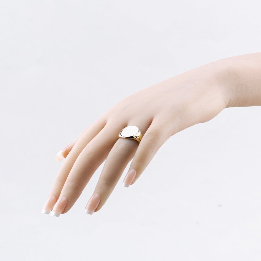 Vintage 9ct Yellow Gold Plain Oval Patterned Shoulders Signet Ring
