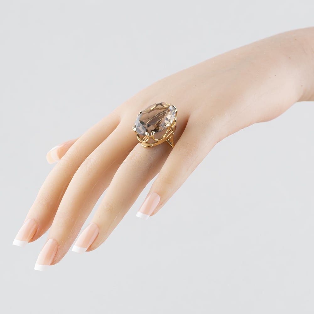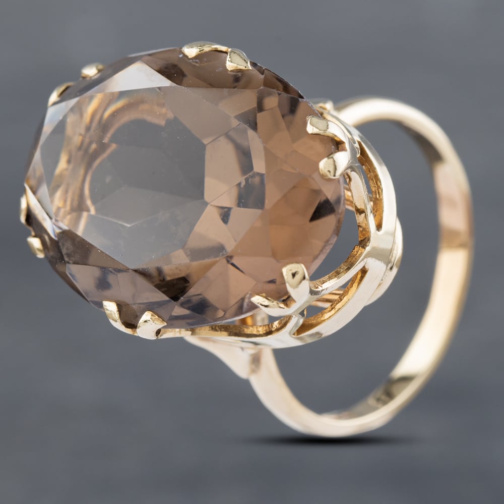 Vintage 9ct Yellow Gold Smokey Quartz Large Oval Dress Ring
