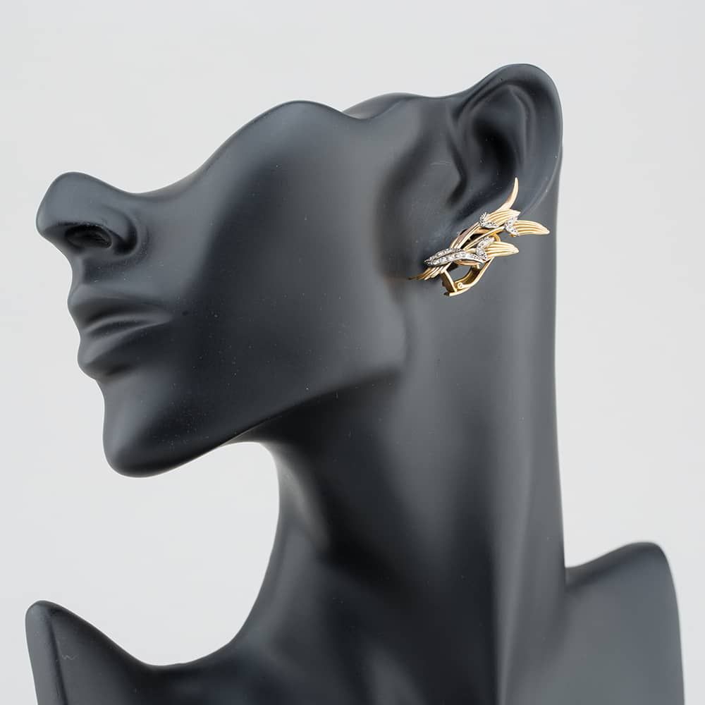Vintage Rose Gold Diamond Set Flower Stud Earrings