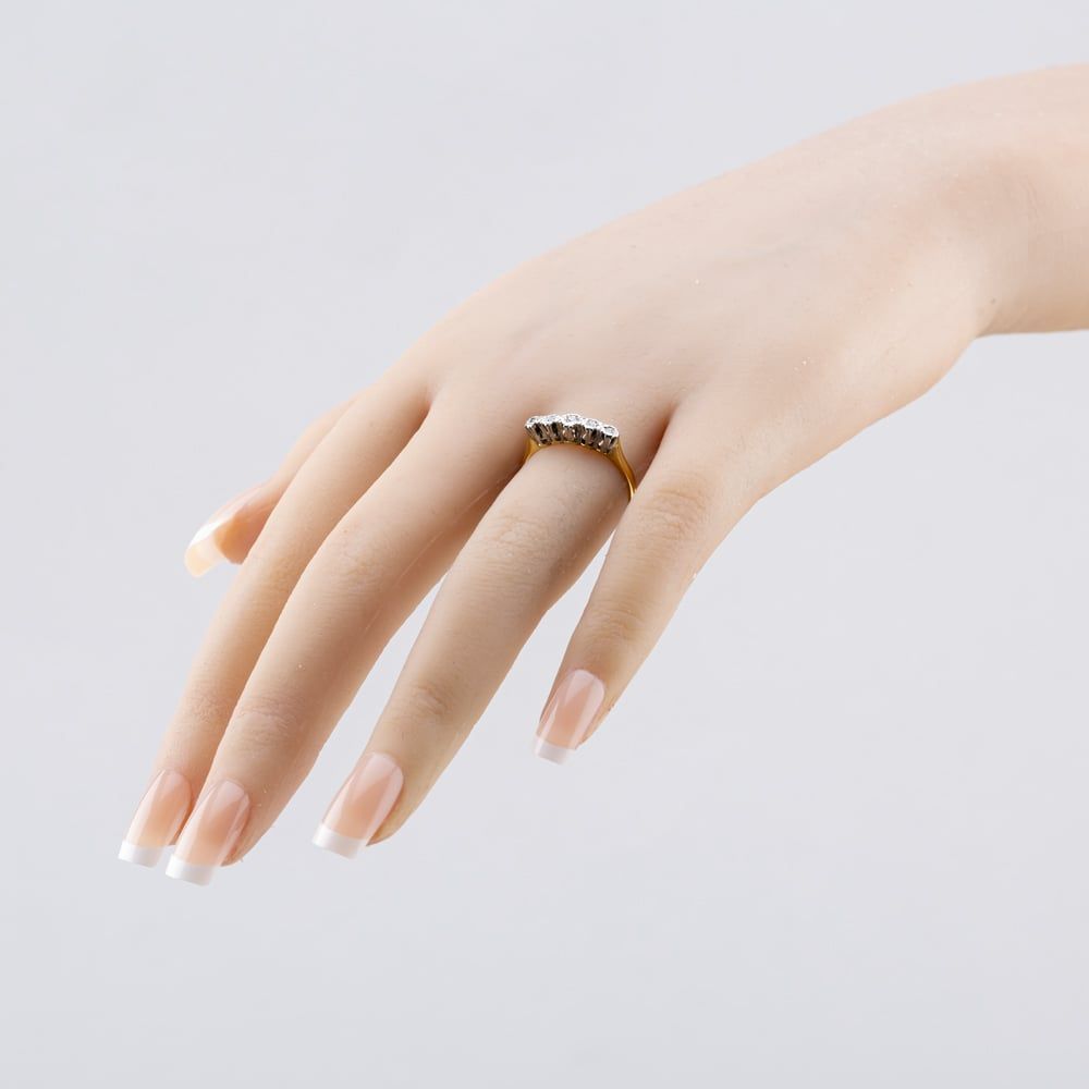 Second Hand Vintage Yellow Gold 0.08ct Brilliant Cut Diamond Platinum Head 5 Stone Half Eternity Ring 41382766 Second Hand Vintage Yellow Gold 0.08ct Brilliant Cut Diamond Platinum Head 5 Stone Half Eternity Ring 41382766