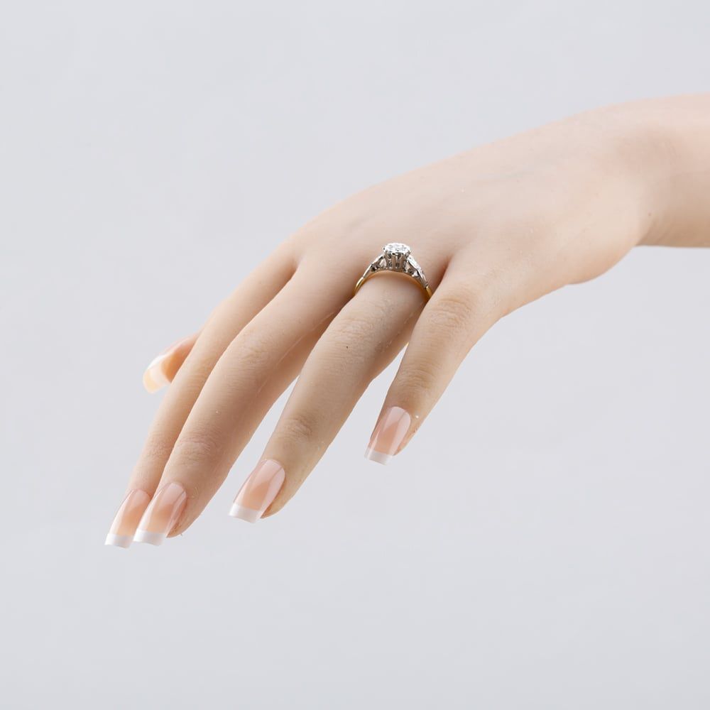 Vintage Yellow Gold 0.20ct Brilliant Cut Diamond Patterned Shoulders Platinum Set Solitaire Ring