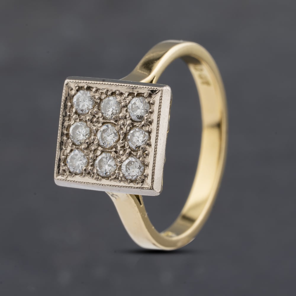 Vintage Yellow Gold 0.45ct Brilliant Cut Diamond Square Cluster Ring
