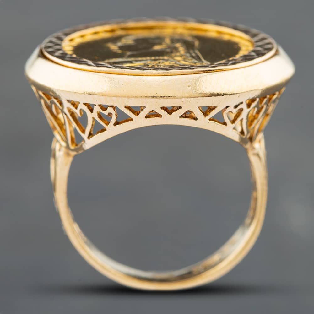 Vintage Yellow Gold 1887 Shield Back Full Sovereign Coin Ring