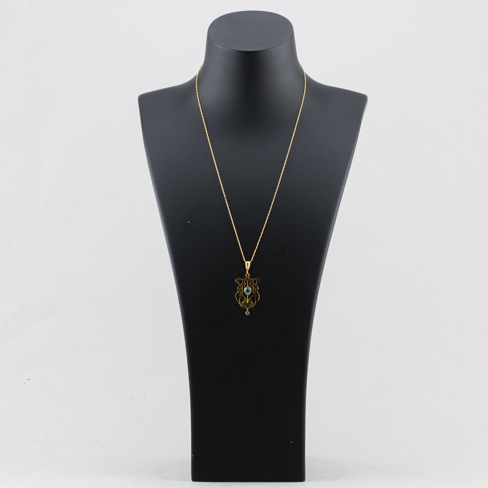 <a href="https://www.thbaker.co.uk/stores/"><b>Click here to find your <font color="6d1a42">nearest store</font></b></a>Second Handhttps://www.thbaker.co.uk/media/catalog/product/4/1/41-14-2951_model_1.jpgadd-to-cartcondition:Yesdisc_no_stock:NoYesNo41142951Second Hand41142951LadiesT H Baker Packaging12 Month WarrantyNoPendant with Chain2.9g20inchPendantPrince of WalesYellow GoldBlueAquamarineBlue{"name":"Klarna","text":"3 payments of \u00a398.33","imageUrl":"https:\/\/www.thbaker.co.uk\/media\/nosto\/klarna.png"}Second Hand Vintage Yellow Gold Aquamarine Decorative Openwork Dropper Pendant & 20 Inch Prince Of Wales Chain41-14-29512026-01-02 00:00:00[{"path":"\/Jewellery\/Gemstone Jewellery","url":"\/gemstone-jewellery\/"},{"path":"\/Jewellery","url":"\/jewellery\/"},{"path":"\/Seasonal\/Christmas Collection","url":"\/christmas-collection\/"},{"path":"\/Seasonal\/Christmas Collection\/Gifts For Her","url":"\/christmas-gifts-for-her\/"},{"path":"\/Jewellery\/Pendants","url":"\/pendants\/"},{"path":"\/Second Hand Collection","url":"\/second-hand\/"},{"path":"\/Second Hand Collection\/Second Hand Jewellery","url":"\/second-hand-jewellery\/"},{"path":"\/Second Hand Collection\/Second Hand Necklaces & Pendants","url":"\/second-hand-necklaces-and-pendants\/"},{"path":"\/Jewellery\/Gold Jewellery","url":"\/gold-jewellery\/"},{"path":"\/Second Hand Collection\/Second Hand Ladies","url":"\/second-hand-ladies-collection\/"},{"path":"\/Second Hand Collection\/Second Hand Gemstones","url":"\/second-hand-gemstone-jewellery\/"},{"path":"\/Jewellery\/Ladies Jewellery","url":"\/ladies-jewellery\/"},{"path":"\/Second Hand Collection\/Second Hand Vintage","url":"\/second-hand-vintage\/"},{"path":"\/Second Hand Collection\/Second Hand Vintage\/Second Hand Vintage Necklaces & Pendants","url":"\/second-hand-vintage-necklaces-and-pendants\/"},{"path":"\/Second Hand Collection\/Second Hand Necklaces & Pendants\/Second Hand Pendants","url":"\/second-hand-pendants\/"},{"path":"\/Second Hand Collection\/Second Hand Necklaces & Pendants\/Second Hand Necklaces","url":"\/second-hand-necklaces\/"},{"path":"\/Second Hand Collection\/Second Hand Necklaces & Pendants\/Second Hand Gemstone Pendants","url":"\/second-hand-gemstone-pendants\/"},{"path":"\/Jewellery\/Gemstone Jewellery\/Aquamarine Jewellery","url":"\/aquamarine-jewellery\/"},{"path":"\/Jewellery\/Gold Jewellery\/Yellow Gold Pendants & Necklaces","url":"\/yellow-gold-pendants\/"},{"path":"\/Jewellery\/Gold Jewellery\/Yellow Gold Pendants & Necklaces\/Yellow Gold Gem Set Pendants","url":"\/yellow-gold-gem-set-pendants\/"},{"path":"\/Second Hand Collection\/Second Hand Gold","url":"\/second-hand-gold\/"},{"path":"\/Second Hand Collection\/Second Hand Gemstones\/Second Hand Aquamarine","url":"\/second-hand-aquamarine-jewellery\/"},{"path":"\/Second Hand Collection\/Second Hand Necklaces & Pendants\/Second Hand Ladies Pendants & Necklaces","url":"\/second-hand-ladies-pendants-and-necklaces\/"},{"path":"\/Second Hand Collection\/Second Hand Necklaces & Pendants\/Second Hand Yellow Gold Pendants & Necklaces","url":"\/second-hand-yellow-gold-pendants-and-necklaces\/"},{"path":"\/Seasonal\/Christmas Collection\/Pre Loved Christmas Gifts","url":"\/pre-loved-christmas-gifts\/"},{"path":"\/Free Gift","url":"\/free-gift\/"}]2026-01-02