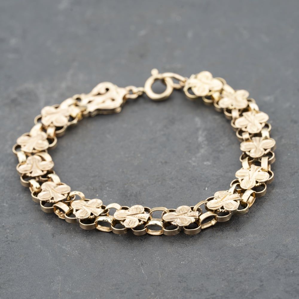 Vintage Yellow Gold Double Row Clover Design 8 Inch Bracelet