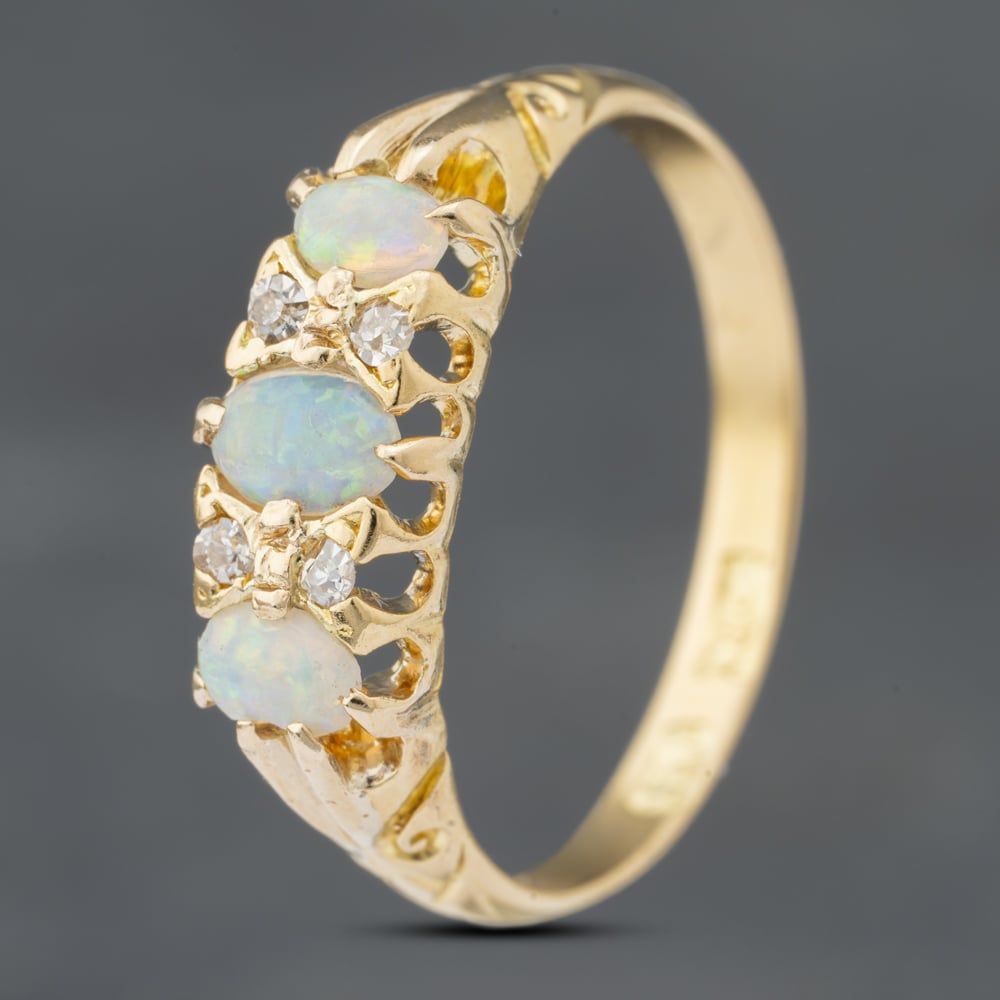 Vintage Yellow Gold Opal & Diamond Seven Stone Ring