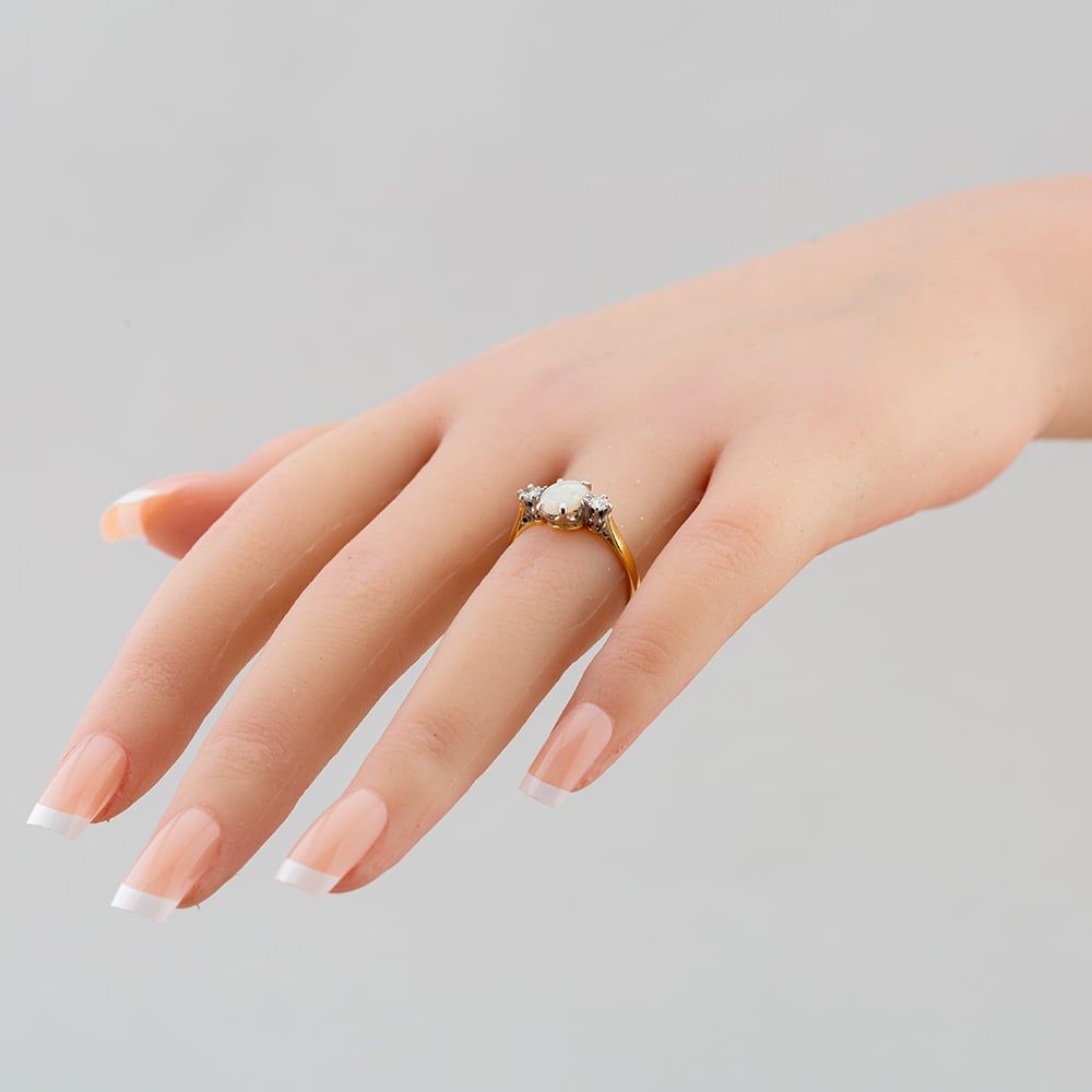Vintage Yellow Gold Opal & Diamond three Stone Ring