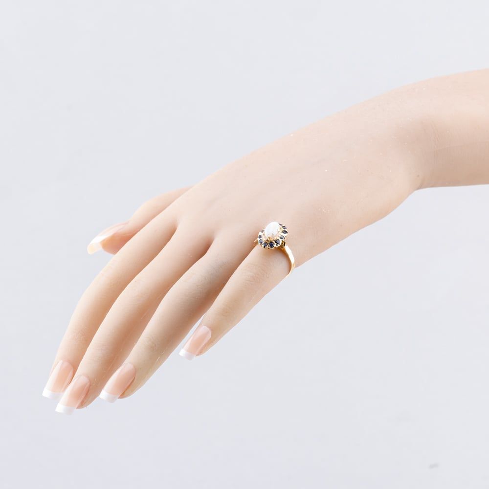 Second Hand Vintage Yellow Gold Opal & Sapphire Oval Cluster Ring 41103566