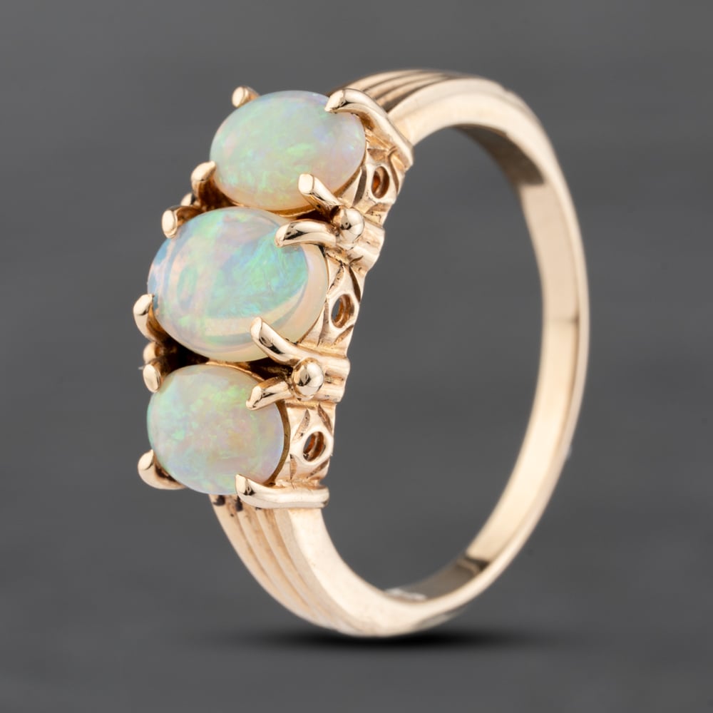 Second Hand Vintage Yellow Gold Opal Three Stone Ring 41103576