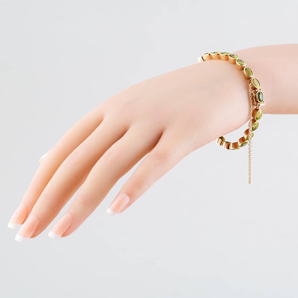 Vintage Yellow Gold Oval Cut Peridot 7 Inch Tennis Bracelet