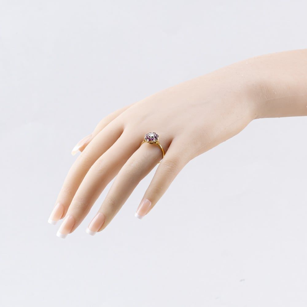 Second Hand Vintage Yellow Gold Ruby & 0.19ct Diamond Flower Dress Ring 41383592