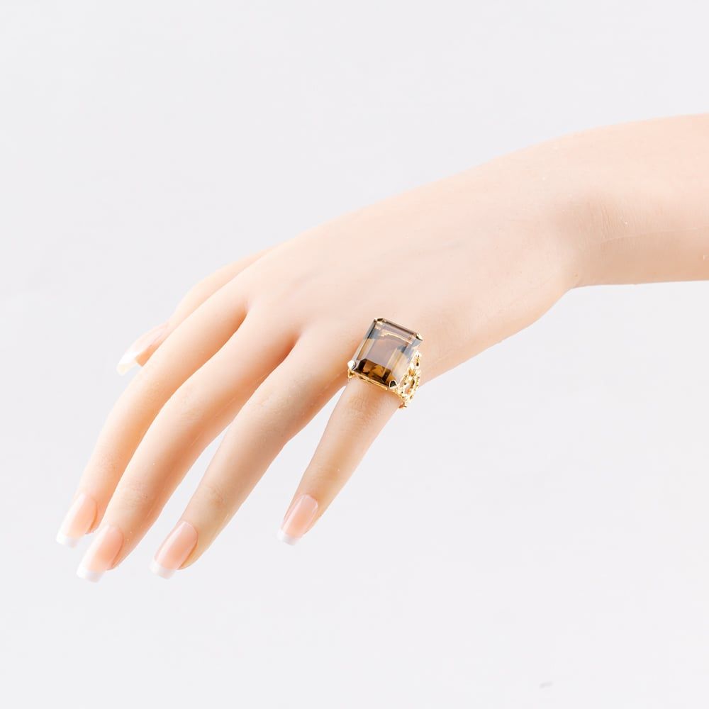 Vintage Yellow Gold Smoky Quartz Large Oblong Dress Ring