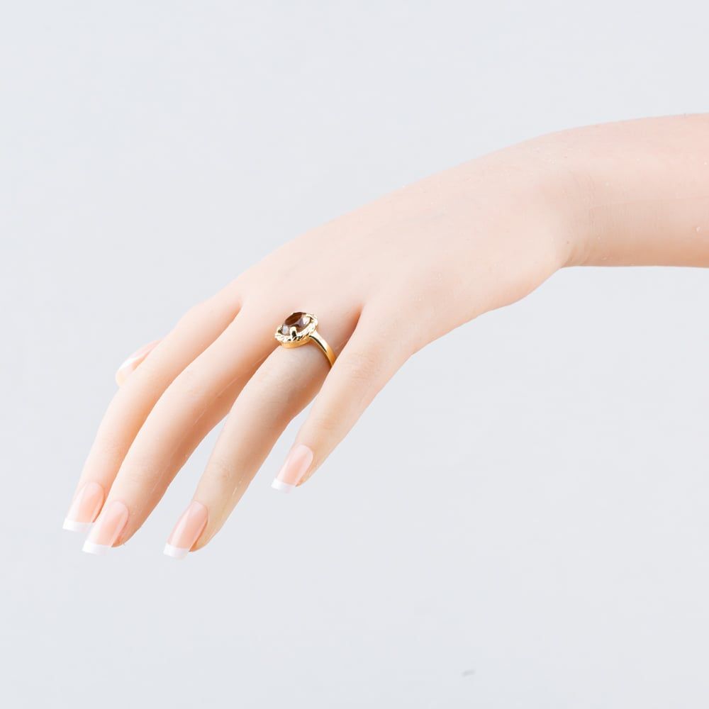 Vintage Yellow Gold Smoky Quartz Oval Rope Edge Dress Ring