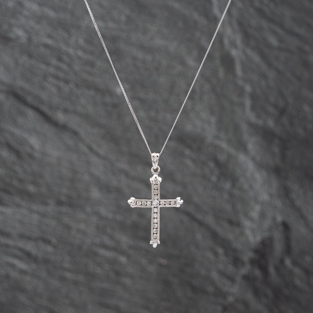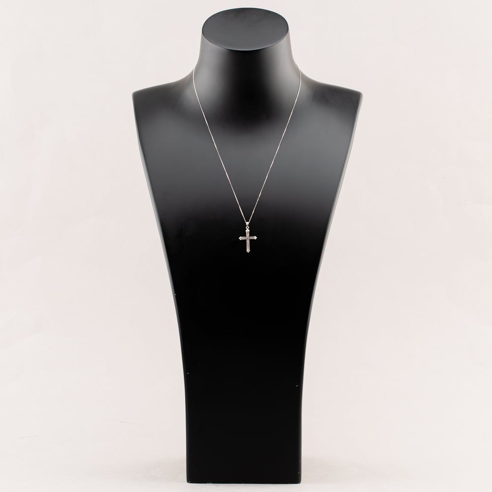 Second Hand White Gold 0.18ct Diamond Set Cross Pendant & 18 Inch Curb Chain 41142615 Second Hand White Gold 0.18ct Diamond Set Cross Pendant & 18 Inch Curb Chain 41142615