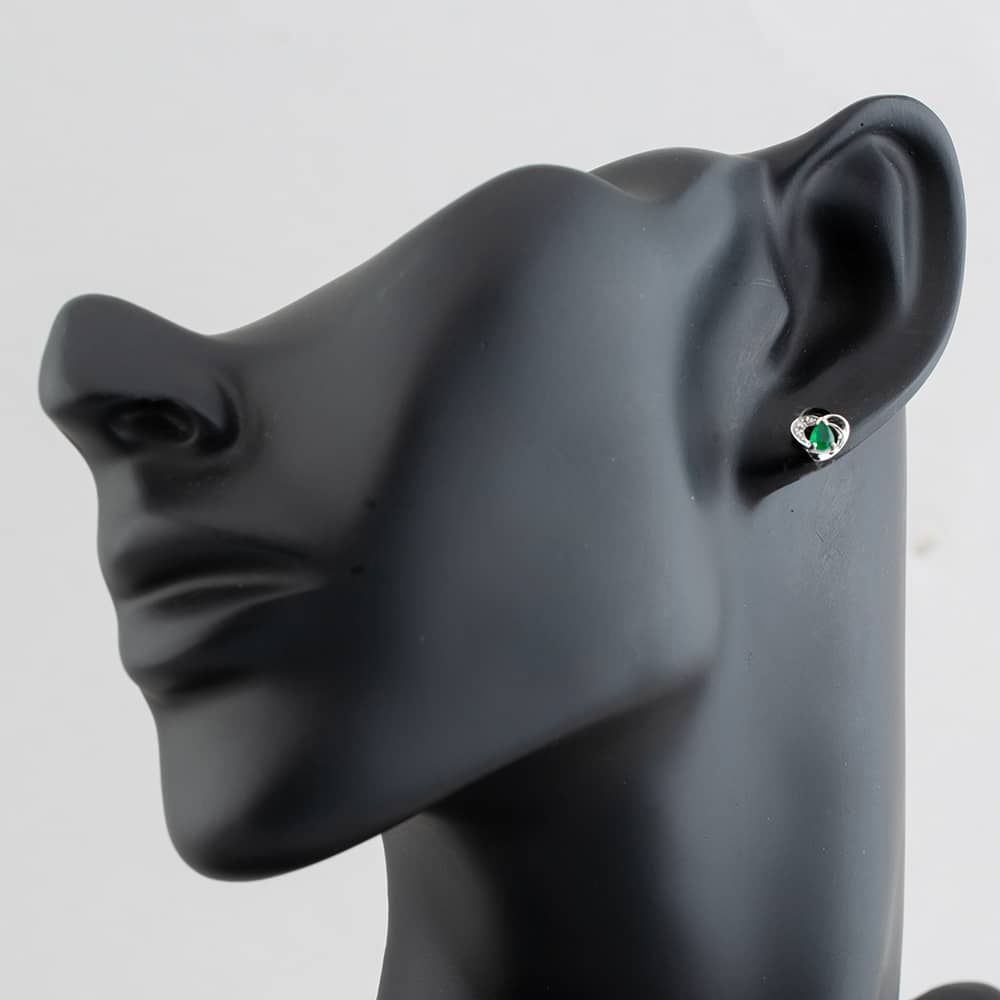 White Gold 0.26ct Pear Cut Emerald & Diamond Heart Stud Earrings